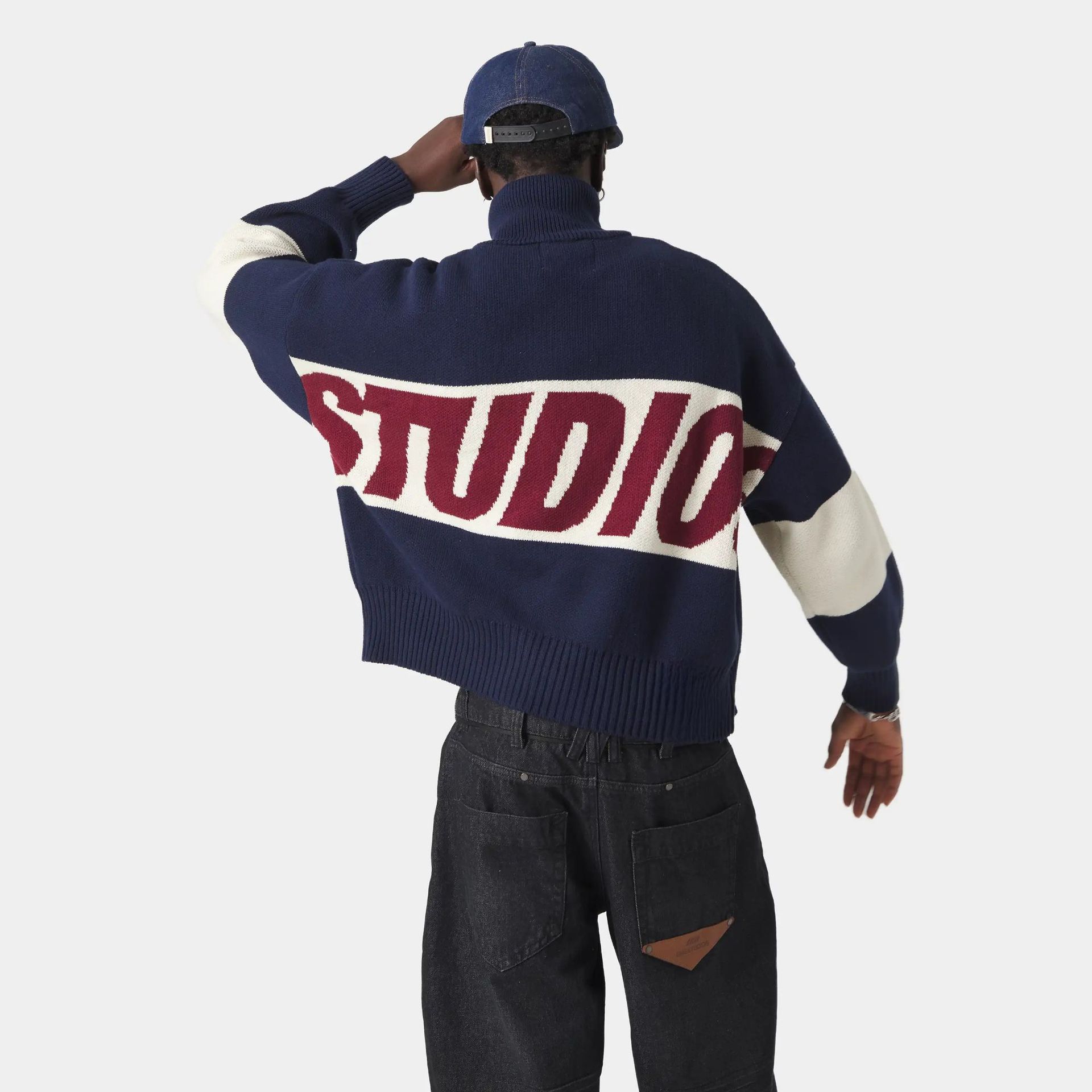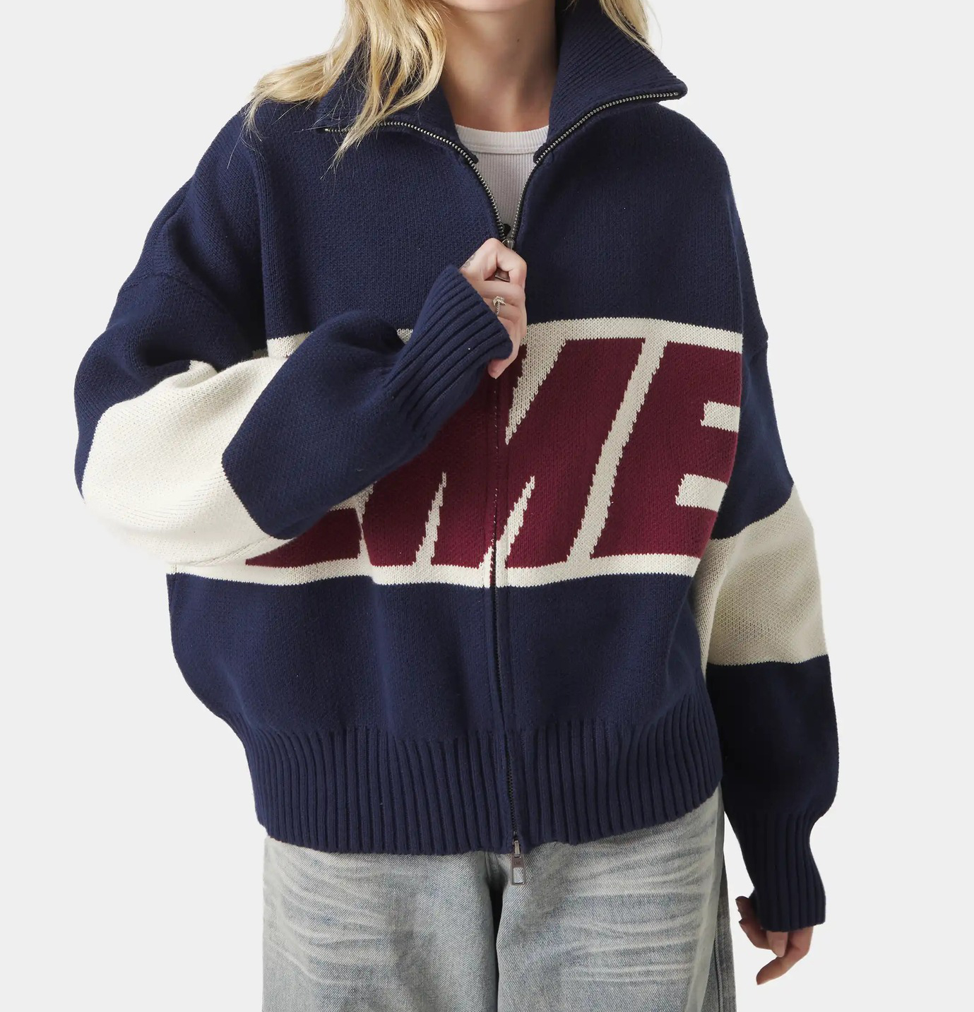 Retro Spliced Navy Zipper Knit ๐ฅ