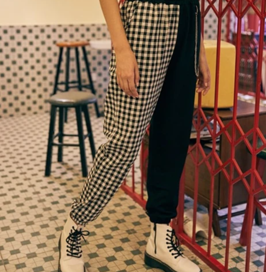 HIGH WAISTED GINGHAM SPLIT TROUSERS