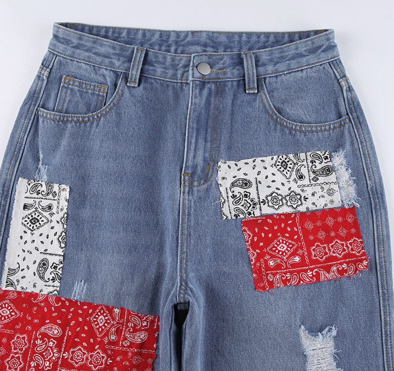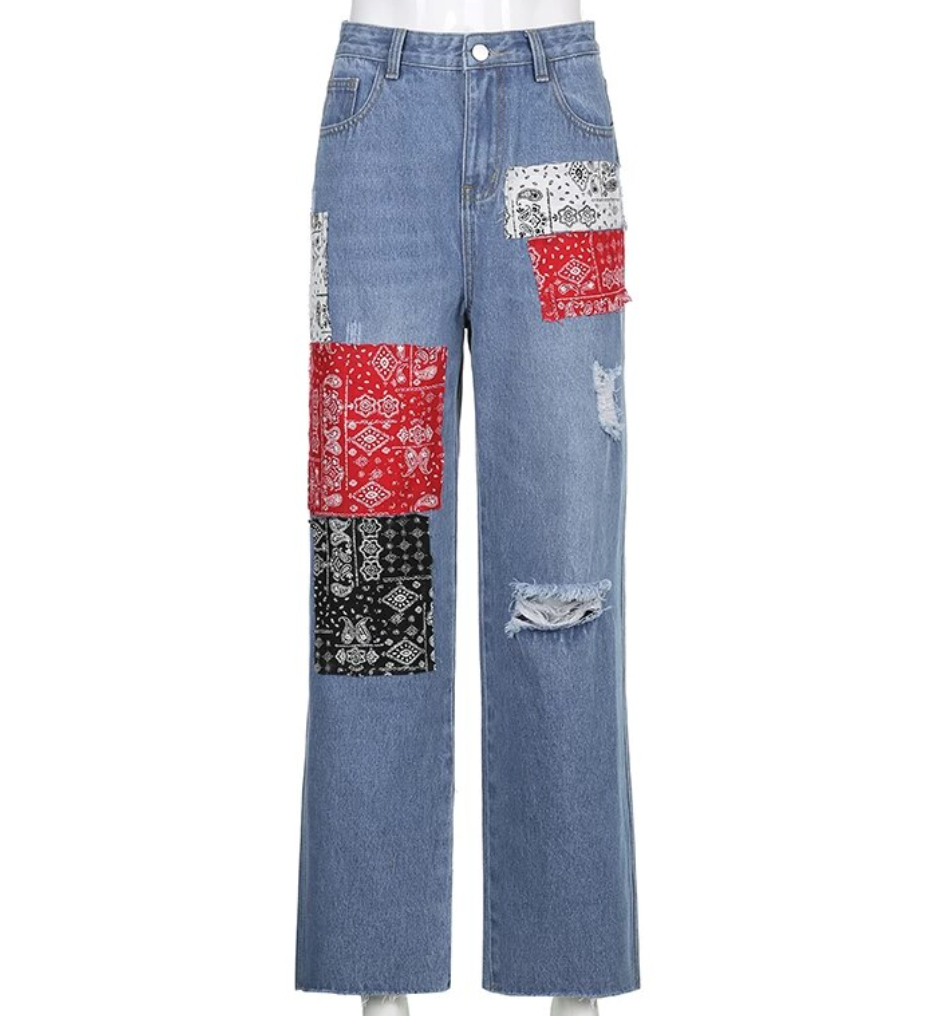 PAISLEY PATCHWORKS RIPPED JEANS