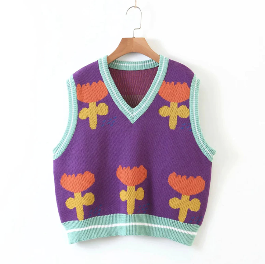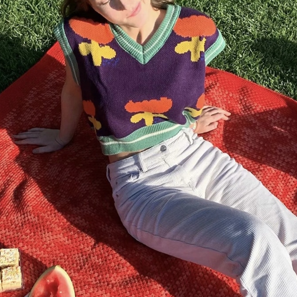 FLORAL PURPLE VEST SWEATER