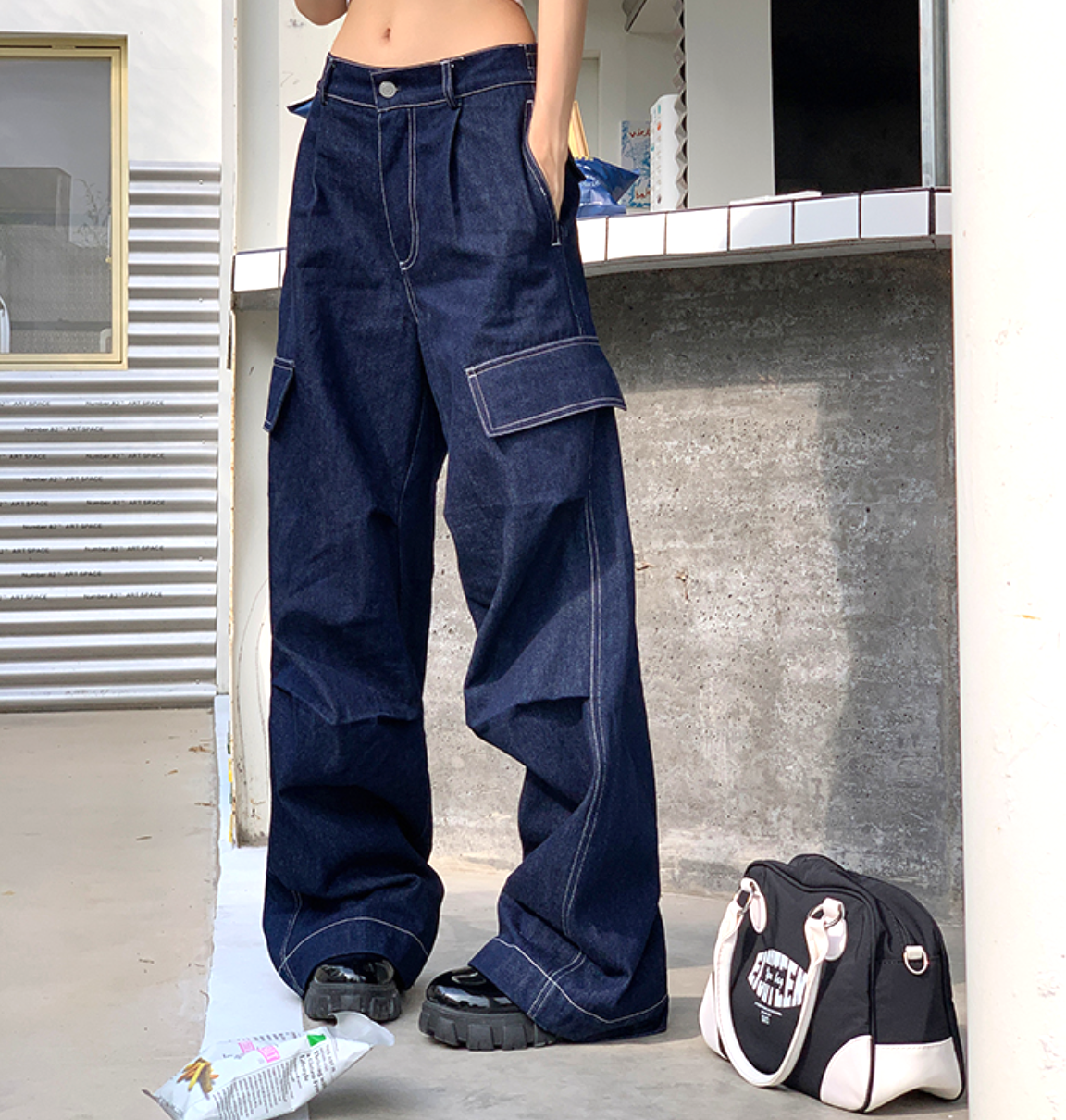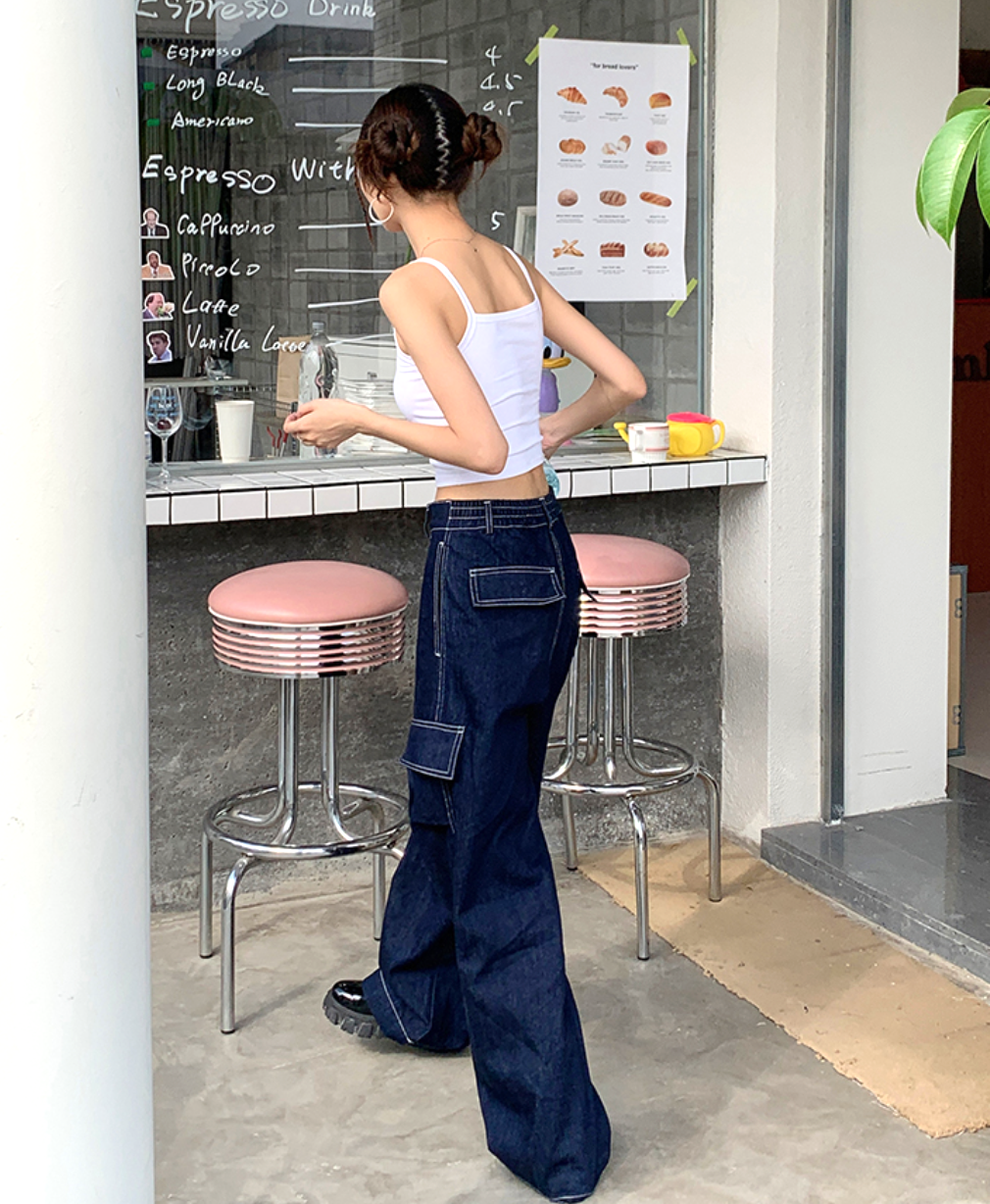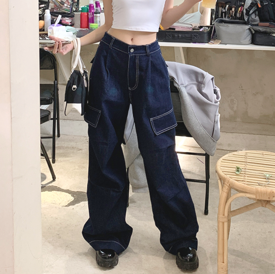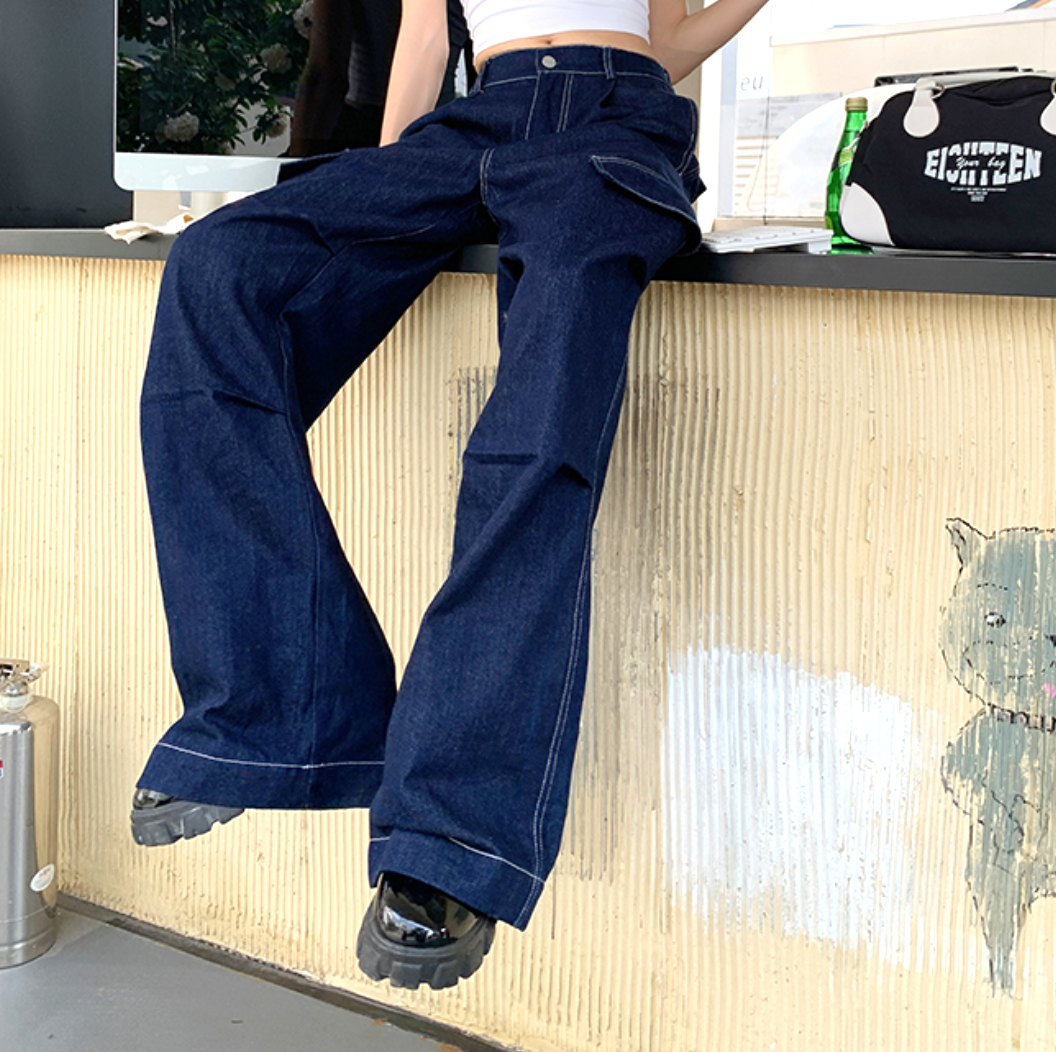CONTRAST STITCH WORKER JEANS