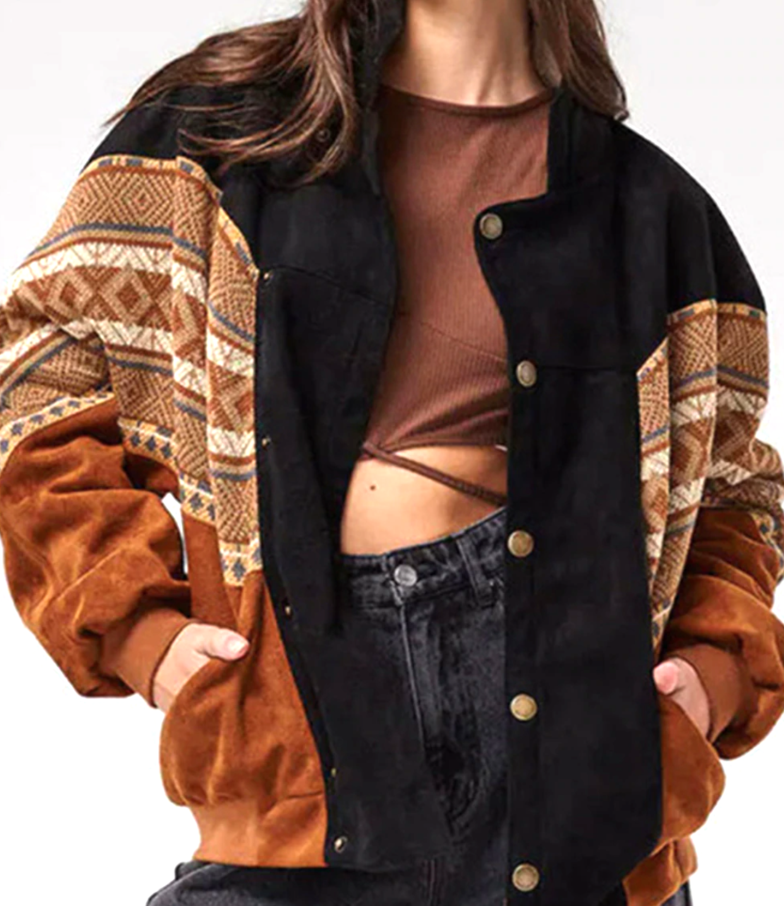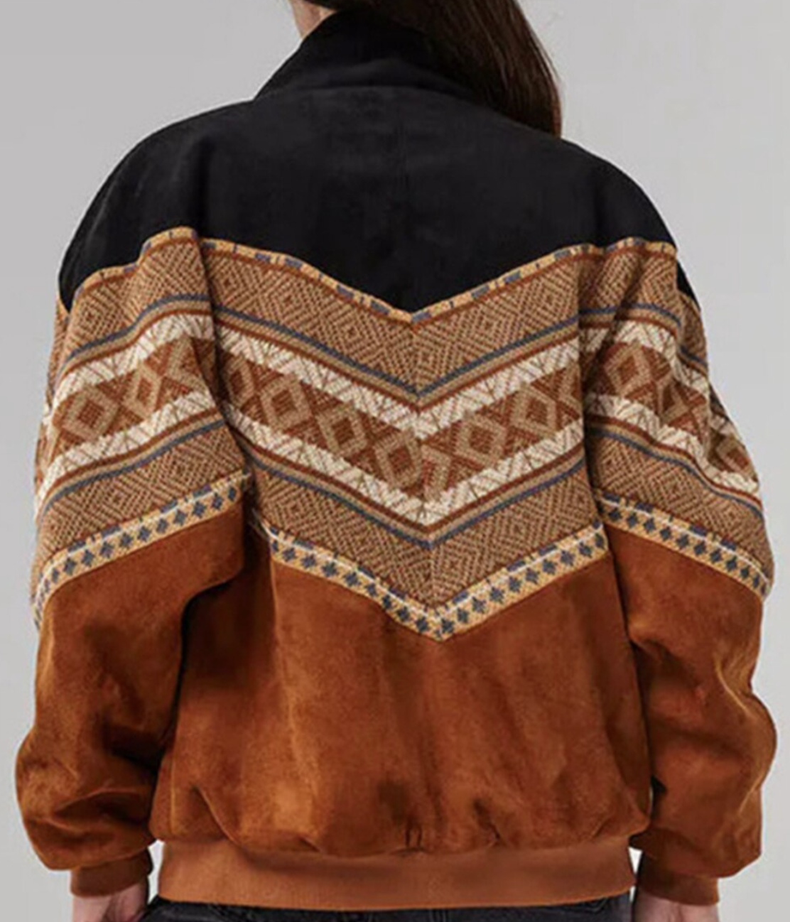 BOHO TRIBAL FLEECE JACKET IN BROWN
