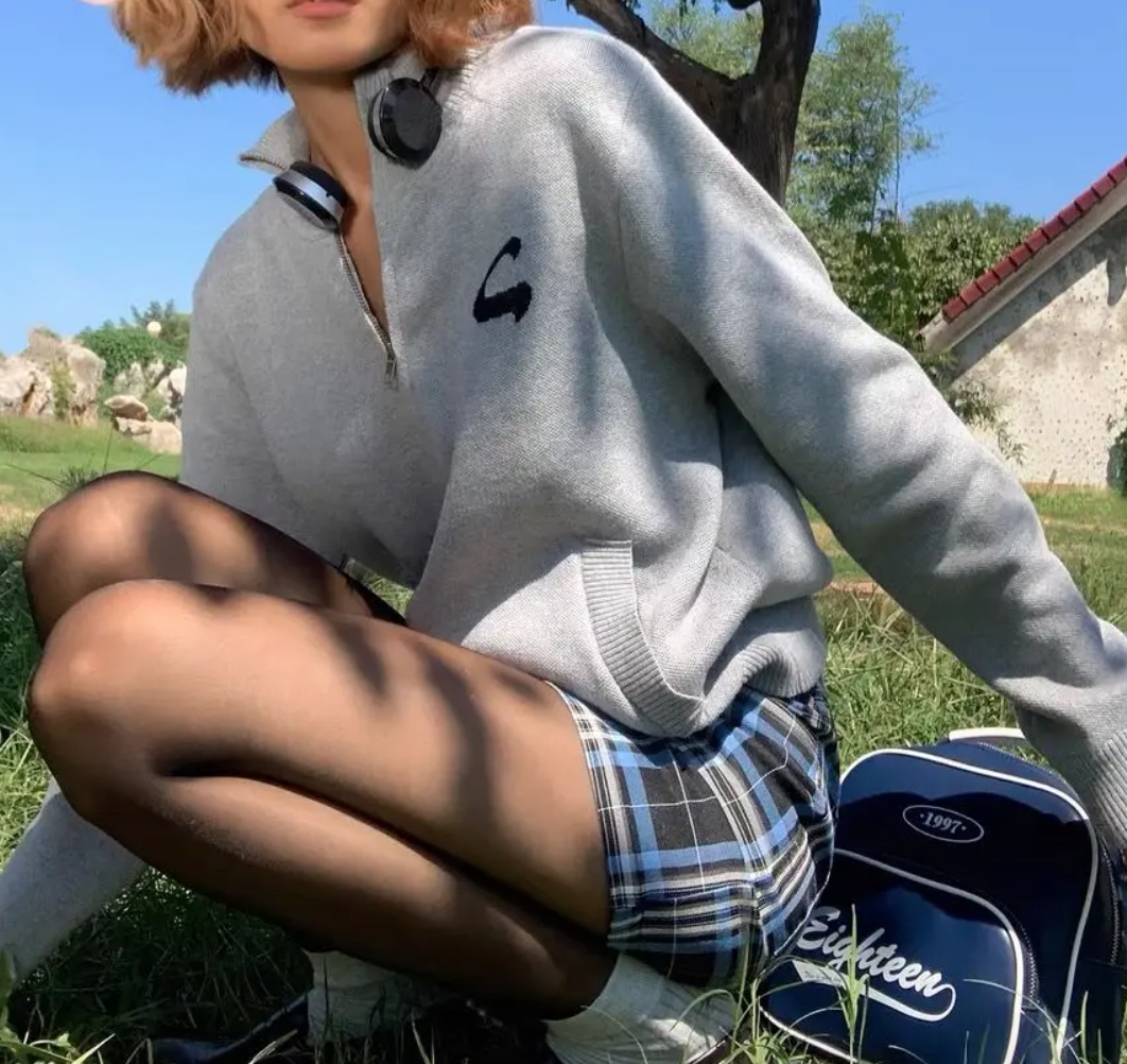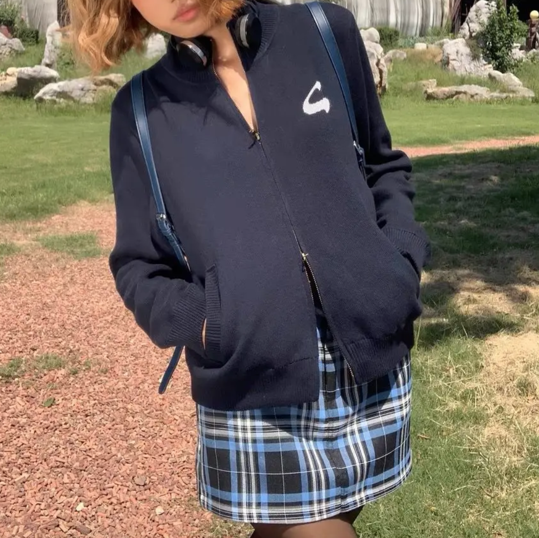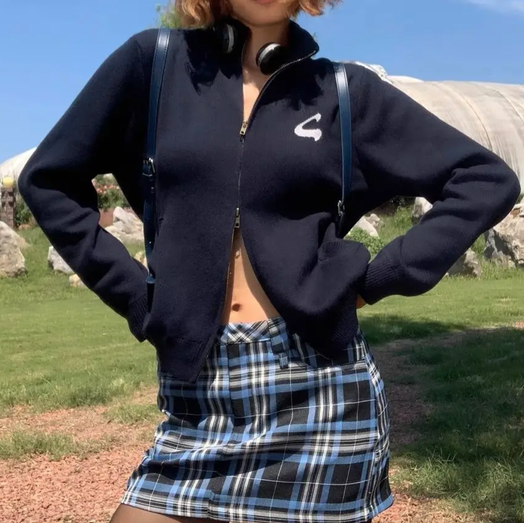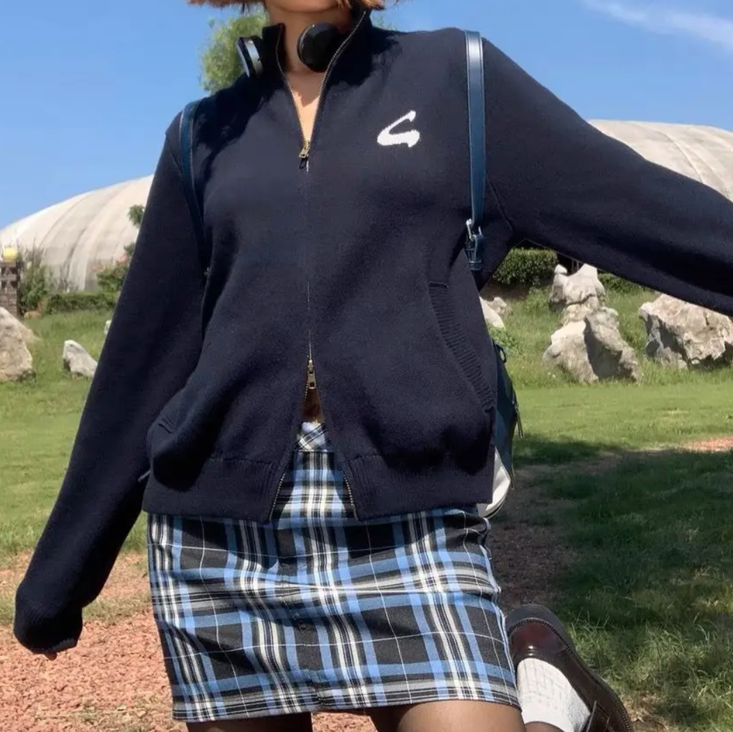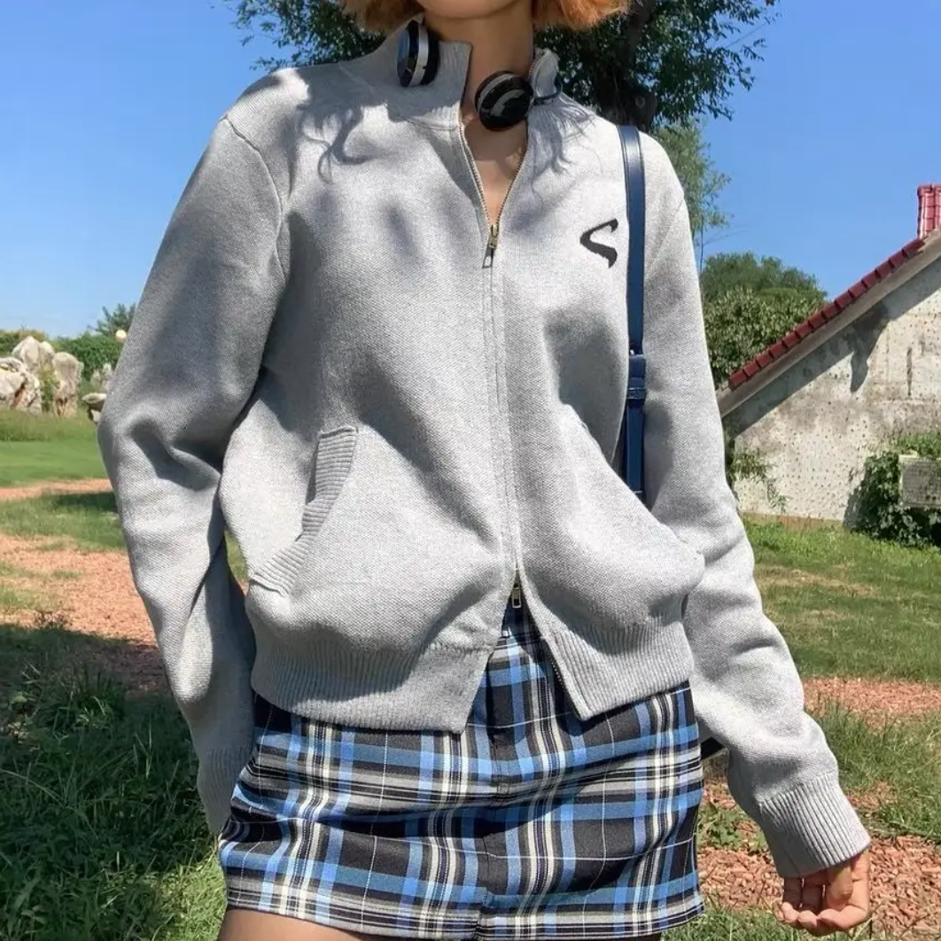 Y2K STANDING COLLAR CARDIGAN ZIPPER
