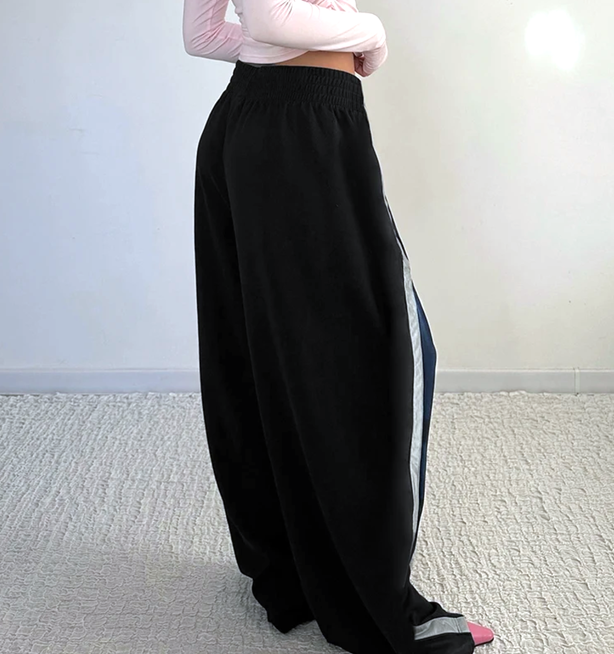 Y2K CONTRAST SIDE SEAM WIDE LEG PANTS
