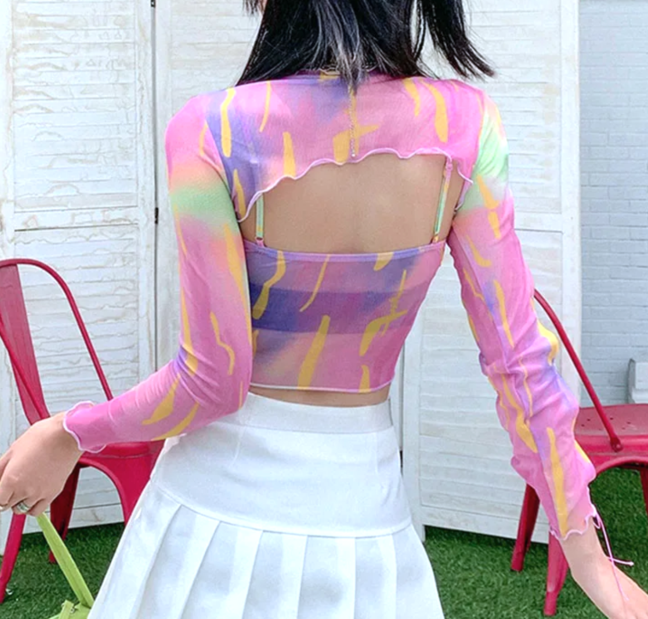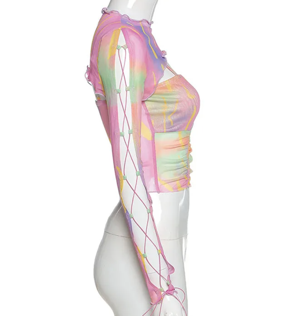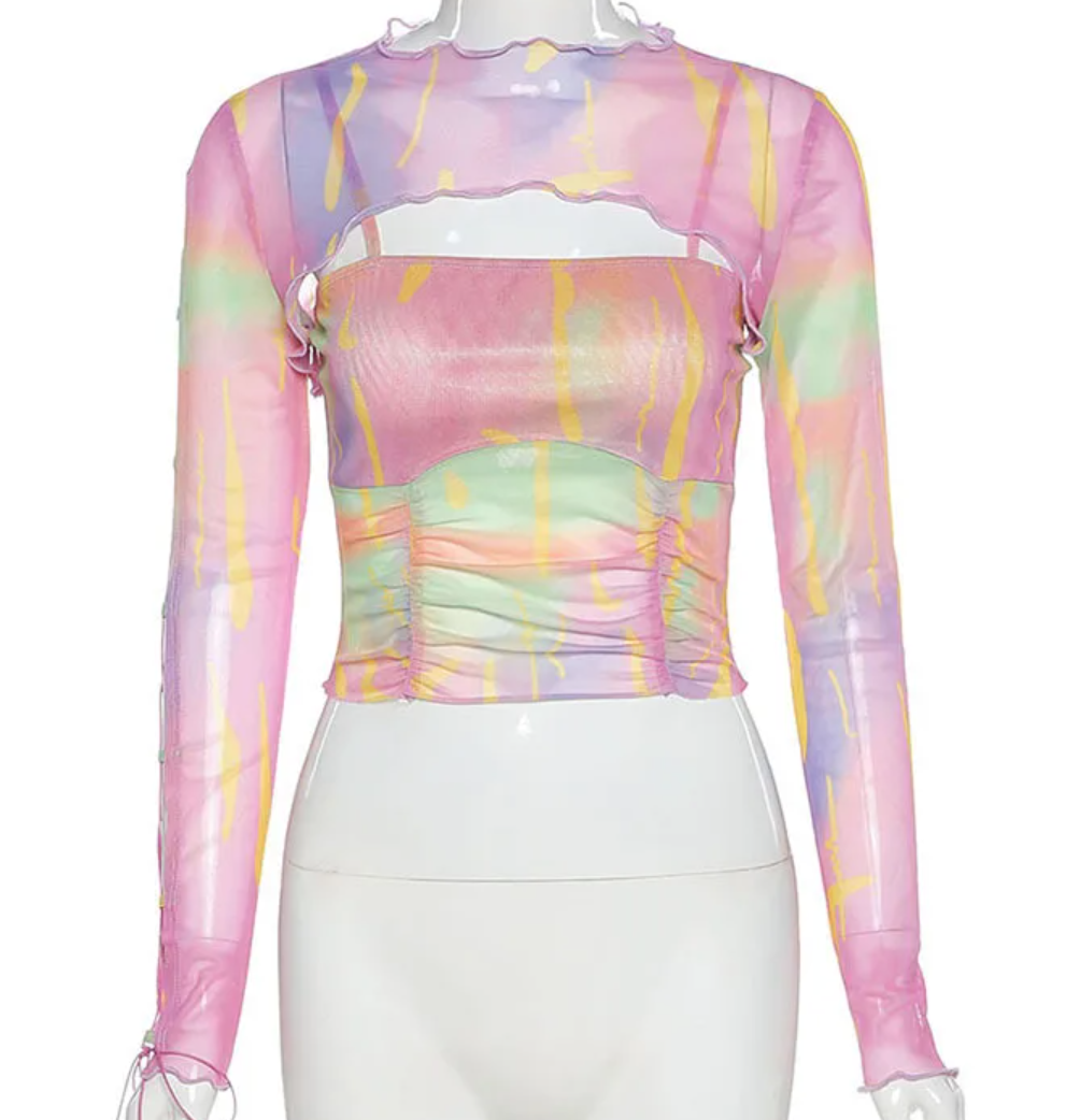 Y2K RAINBOW 2-PIECES SET MESH TOP