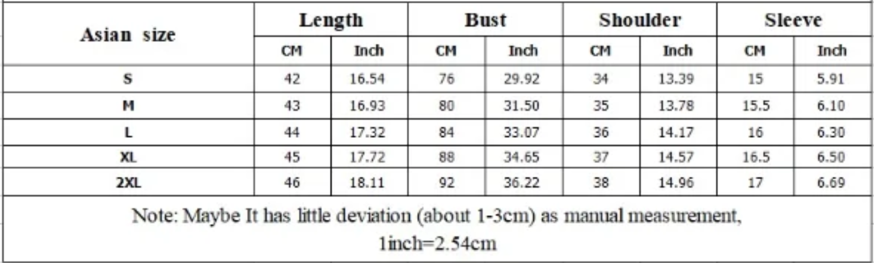 FREE SHIPPING WORLDWIDE Color : White, Black Size : S - XXL Material: Polyester, Cotton *Please check size measurement details in photo