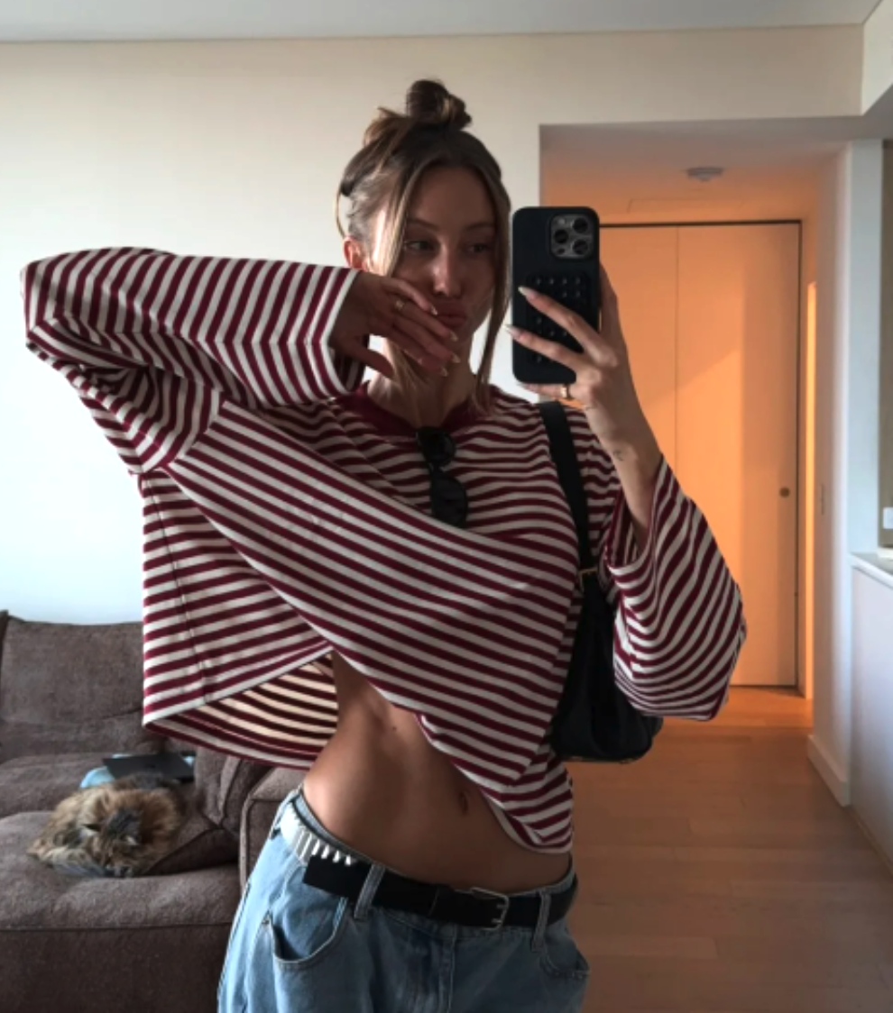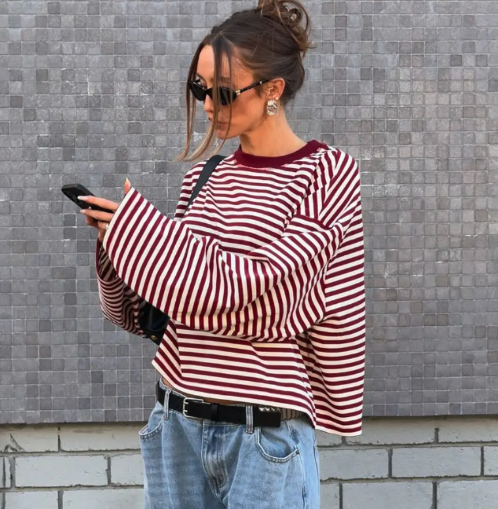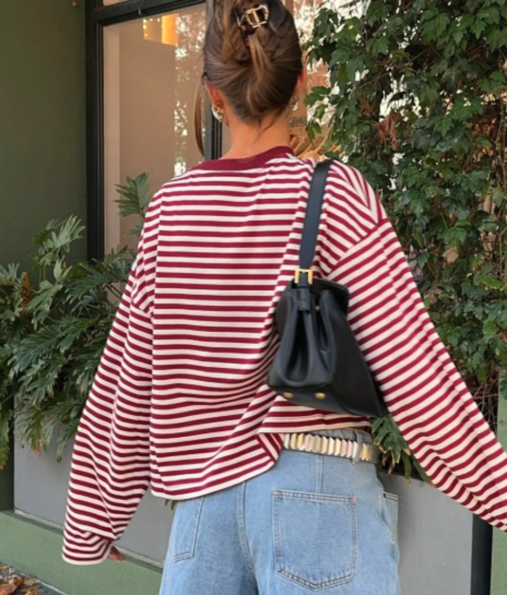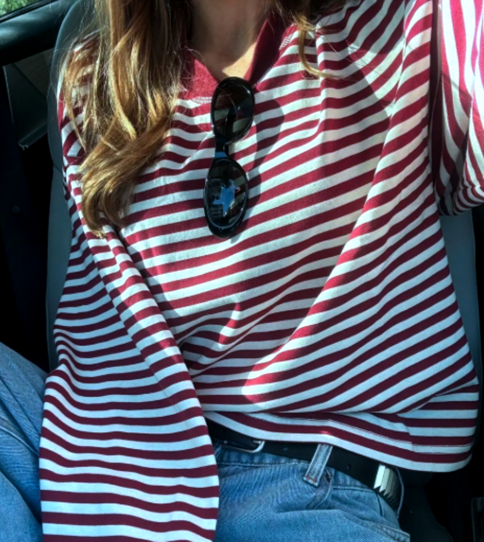 RED STRIPED LOOSE LONG SLEEVE TEE