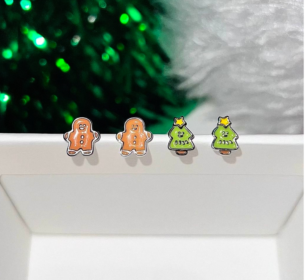 CHRISTMAS TREE & GINGERBREAD MAN EARRINGS