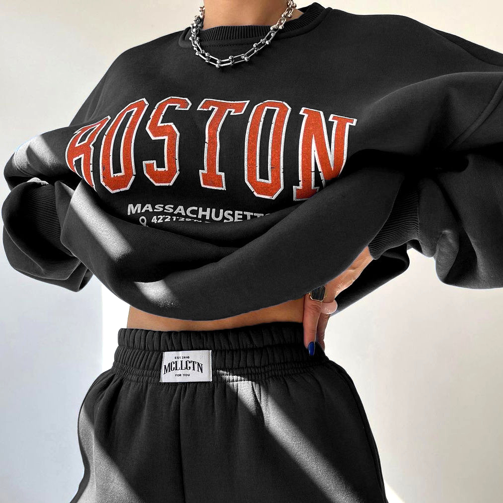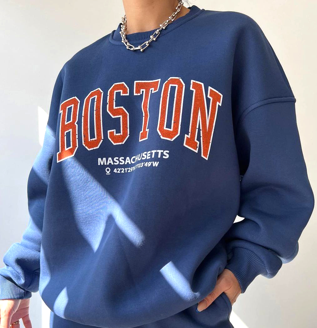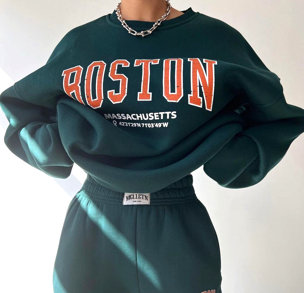 Rep Boston in cozy vintage style 🏙️🍂 Oversized crewneck with classic distressed print and coords – perfect for that effortless East Coast look! Available in multiple colors ✨"